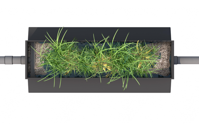 - Filtração - ECODEPUR® FITOCOMPACT: A filtração do efluente após tratamento Biológico/Secundário realiza-se mediante o processo por leito de macrófitas.